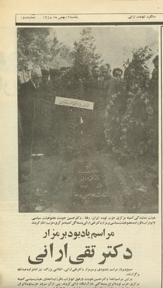 ننگ با موزائیک رنگی پاک نمی شود روزنامه مردم ارگان حزب توده ایران در شماره158 در سال 1358 عکس و گزارش مراسم سالگرد قتل دکتر ارانی در زندان رضاشاه را منتشر کرد. این عکس اکنون یک سند تاریخی در باره محل دفن دکتر ارانی است. |