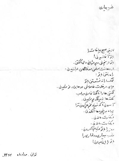 شب بیداری - نگاه کنید به مطلب آخرین شعر