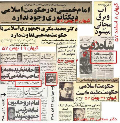 اگر روزی، نمایشگاهی از صفحات اول مطبوعات سال انقلاب -1357- و مطبوعات سال اول تاسیس جمهوری اسلامی – 1358- برپا شود، نسلی که در آن سالها کمتر از 10 سال داشته و حالا مردان و زنانی 40 و چند ساله اند و نسلی که پس از انقلاب بدنیا آمده و حالا درمیانه 25 و 30 سال است، با خواندن آن مطبوعات در چه بهت و حیرتی فرو خواهد رفت؟ این، تنها یک نمونه از عناوین چند شماره روزنامه کیهان مربوط به همان دوران است که در کنار هم قرار گرفته اند. شادی مردمی که انقلاب کردند تا از شر استبداد و سلطنت رها شوند. آنچه که آیتالله خمینی گفت و آنچه که آقای خامنه ای حاکم کرد. به گفته آقای خمینی روحانیون حتی قرار نبود رئیس جمهور شوند و حالا آقای خامنه ای سلطنت می کند و انتخابات را تبدیل به انتصابات کرده، آنچه که کریم سنجانی رهبر جبهه ملی گفت و آنچه که یارانش حالا می گویند. پروازهای آسمانی آقای بنی صدر بر بال اقتصاد اسلامی در حکومت اسلامی، که خیلی زود با آیه های زمینی بدرقه شد. مجلس سنا که حذف شد، اما جایش را دو مجلس خبرگان و مجمع مصلحت گرفتند، نظر اولین سفیر جمهوری اسلامی در اتحاد جماهیر شوروی "دکتر مکری" که از دوستان قدیمی آیت الله خمینی بود و میان جمهوری اسلامی و حکومت اسلامی تفاوت قائل بود. آب و برق و خانه که حالا مردم زیر بار هزینه آن کمر خم کرده اند، قرار بود مجانی باشند و بهره بانکی حذف شود. مارکسیست ها قرار بود آزاد باشند و فعالیت آزاد سیاسی داشته باشند و حالا هزار هزار در کورستان خاوران تهران و شعبه های آن در شهرستان ها خوابیده اند و نسل مذهبی سال انقلاب و سال اول جمهوری اسلامی در زندان است و یا در حبس خانگی. چنان که شایع است محمد خاتمی از بیم سرنوشتی تلخ تر از سرنوشت کنونی برای آنها، در آخرین ساعات رای گیری اخیر، نه در حسینیه جماران، که در یک حوزه دور افتاده در شهر دماوند اعتبار خود را به صندوق انداخت. "نشاط" یک ملت که آقای خامنه ای مرتب آن را تکرار می کند، بیش از این؟ اول بنا نبود، بسوزند عاشقان آتش به جان شمع فتد، کاین بنا نهاد